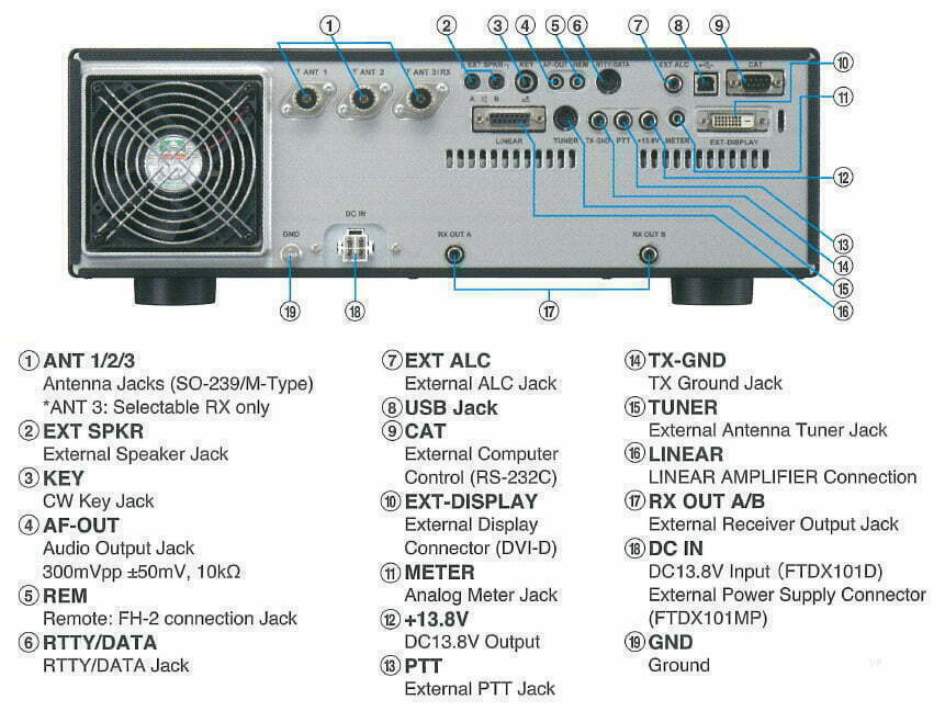- FT-DX101 D : putere de transmisie 100W, fără alimentare, necesită alimentare de 13,8V, 22A, unitate VCT-1 numai pe banda principală, bandă principală a filtrului CW de 300 Hz: opțiune, sub-bandă a filtrului CW de 300 Hz: opțiune, Banda principală a filtrului CW 600 Hz: inclusă, subbanda filtrului CW 600 Hz: inclus